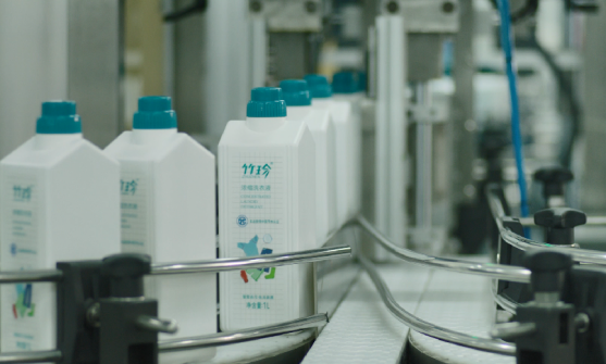 据介绍,车间完全按照GMP标准建设,对生产环境、工艺用水和空气质量严格把控。车间不仅要对物料进行感官、理化、微生物检测,在使用前还要经过静电、风淋等表面除尘及消毒措施,针对一些死角和不易清洗的设备器具,会使用超声波自动清洗机进行彻底清洗。车间生产负责人特别提到:“为了保证生产车间洁净区的空气质量,每天要对洁净区进行空气臭氧灭菌,1小时换气15次,恒温恒湿,保证车间环境达到10万级净化车间标准。” 从研发设计到原料采购,再到生产加工,产业园内每一款产品的每一个生产环节都严格遵循绿色标准。 在产品设计过程中,企业更是引入生态设计理念,最大限度减少产品在整个生命周期中对环境的负面影响。“以2023年获批的‘国家级绿色设计产品’液洗产品为例,该系列产品的包装纸箱达到AA级标准,回收纸占比达60%,性能比普通A级原纸耐磨、耐折,抗压数据可提升20%以上。”产品技术中心负责人介绍道。