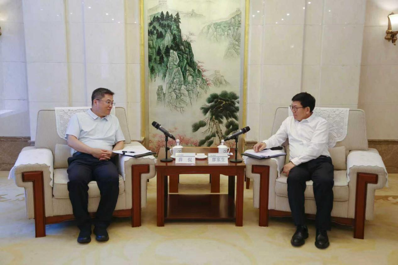 8月25日上午,集团公司党委书记、董事长廖家生在北京节能大厦会见上海市杨浦区委书记薛侃一行,双方就进一步开展务实合作进行深入交流。集团公司党委常委、副总经理曹华斌参加会见。