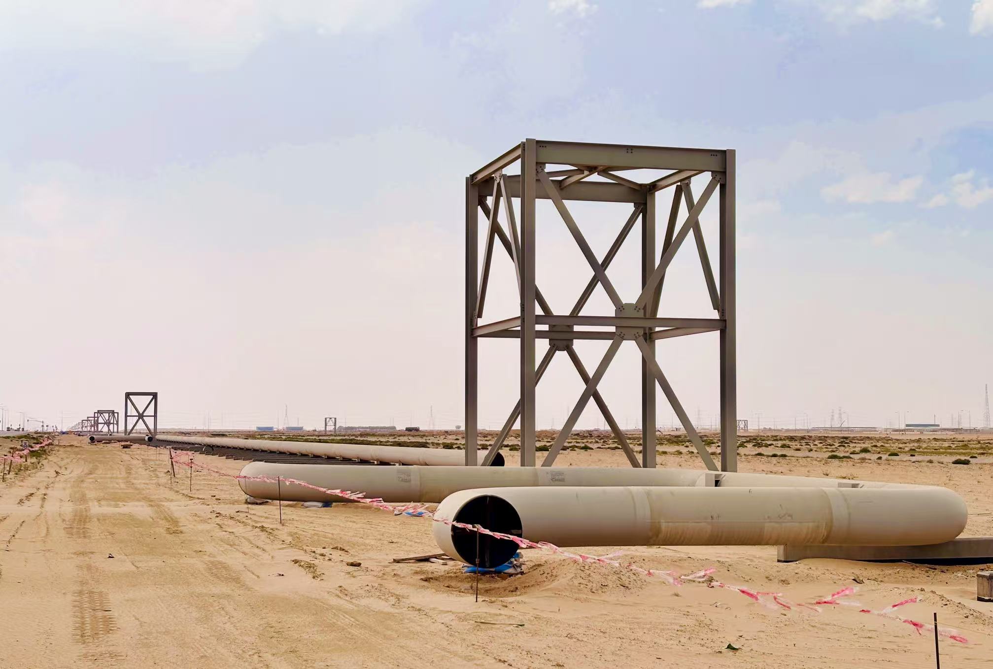 拉斯海尔工业城天然气管道连接一期项目现场图 该项目坐落于沙特阿拉伯东部省朱拜勒市拉斯海尔工业城,核心建设内容包括在拉斯海尔工业城内铺设一条总长约25.7公里的天然气供应主干管线,并建设过滤系统、计量装置及阴极保护系统等配套设施,以保障管线安全稳定运行。项目建成后,将进一步健全拉斯海尔工业城的能源供应网络,显著提升区域天然气输送能力与供应保障水平,为拉斯海尔经济特区各类企业的生产运营提供可靠的能源支撑,对推动经济特区持续、稳健发展具有重要意义。