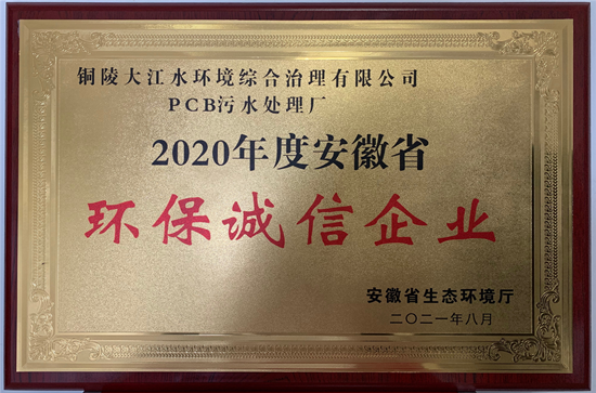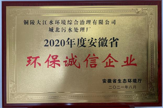 | 铜陵大江水环境综合治理有限公司荣获“安徽省环保诚信企业”称号 |