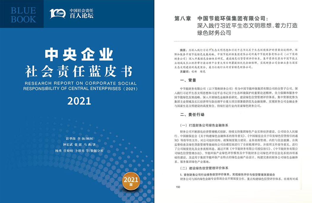 | 财务公司深入践行习近平生态文明思想着力打造绿色财务公司案例,入选国资委《中央企业社会责任蓝皮书(2021)》 |